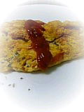 最後にバジルをふりかけて、ケチャップをつけて出来上がり。