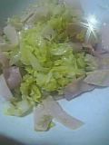 できあがったのは何の変哲もないハム入りキャベツ炒め。